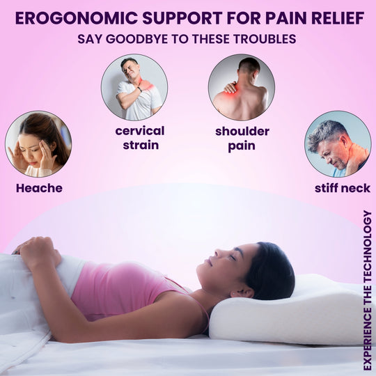 "The contour pillow has improving sleep quality and providing significant pain relief. Users report reduced neck and shoulder pain due to its ergonomic design, which aligns the spine and maintains proper posture during sleep. The memory foam material offers excellent support and conforms to the shape of the head and neck, ensuring personalized comfort and minimizing pressure points. demonstrating clear advantages over traditional pillows."